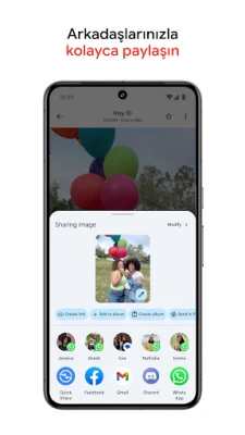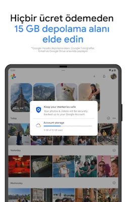 Geçmişe keyifli yolculuklar yapın ve Google Fotoğraflar ile en sevdiğiniz anıları yeniden yaşayın. Paylaşım hiç bu kadar kolay olmamıştı; listenizdeki, hatta Google Fotoğraflar kullanmayan kişilerle bile fotoğraf, video ve albümlerinizi kolayca paylaşın. Cihazınızda yer açma ihtiyacı hissettiğinizde, yedeklenen fotoğrafları tek bir dokunuşla telefonunuzdan güvenle kaldırabilirsiniz. Dijital anılarınızı fiziksel güzelliklere dönüştürmek isterseniz, sevdiğiniz görselleri fotoğraf albümlerine, baskılara veya kanvas duvar tablolarına dönüştürme seçenekleri mevcuttur (bu hizmetlerin kullanılabilirliği bölgeye göre değişiklik gösterebilir). Üstelik, entegre Google Lens sayesinde fotoğraflarınızdaki metin ve nesneler hakkında bilgi edinerek dünyayı yeni bir gözle keşfedin.