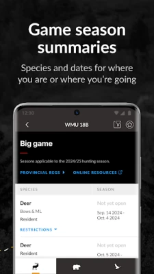 iHunter Saskatchewan, avcılara ve doğa tutkunlarına Saskatchewan yaban hayatı yönetim bölgeleri (WMZ) hakkında kapsamlı bir bakış sunar. WMZ'leri haritalar üzerinde göstererek konumunuzu ve bulunduğunuz bölgeyi kolayca tespit edin. Av noktalarınızı, geçmiş avları ve arazi sahibi bilgilerini ekleyerek haritanızı kişiselleştirin. Aboneliklerle, büyük av, yırtıcı ve av kuşu sezonları hakkında detaylı bilgilere erişin.